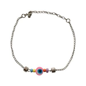 TOBILLERA DE HILO CON MADERITAS, BOLITAS METÁLICAS Y BUZIOS.